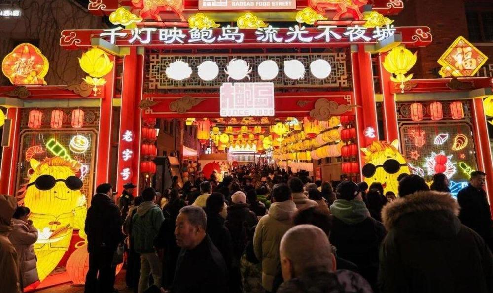 青岛万象城,巴奴毛肚火锅店外三四十位顾客刷着手机等待叫号,店内热气蒸腾;德州万达广场,市民在盒马鲜生门店选购走亲访友、家庭聚餐的货品;烟台朝阳街,红灯笼缀满百年洋楼,阵阵果香裹着年味漫过街角……