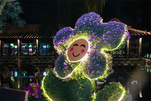 值得一提的是,本届菊展与趵突泉沉浸式夜游《趵突夜画》深度融合,创新推出“夜赏菊韵”全新体验。当暮色降临,精妙设计的灯光将赋予菊花全新的生命力,打造出“白昼赏其形,夜晚观其韵”的全天候、差异化游览体验,让游客领略到“锦绣泉城”夜色下别样的菊展风情。