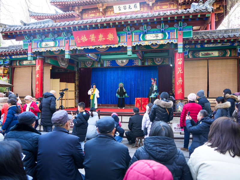 趵突泉白雪楼戏台更是热闹非凡,元旦期间,每天都有原汁原味的戏曲表演在这里上演。《霸王别姬》《遇皇后》《游龙戏凤》《红灯记》《锁麟囊》等经典戏曲名段轮番登场,赢得现场观众阵阵掌声。齐鲁大地的曲艺文化与生机勃勃的千年泉水在这里巧妙融合,碰撞出独特的文化魅力。