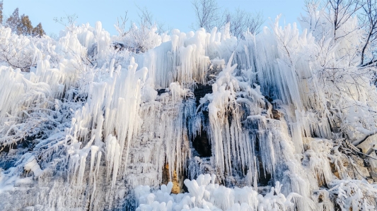 长30余米、宽约100米的冰瀑,伴随着持续的降温,已经迎来了绝美绽放。