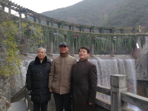 左为丁再献、中为王志东(山东社科院副院长)、右为刘雁飞在郧西县他投资兴建的4A级五龙河景区留影