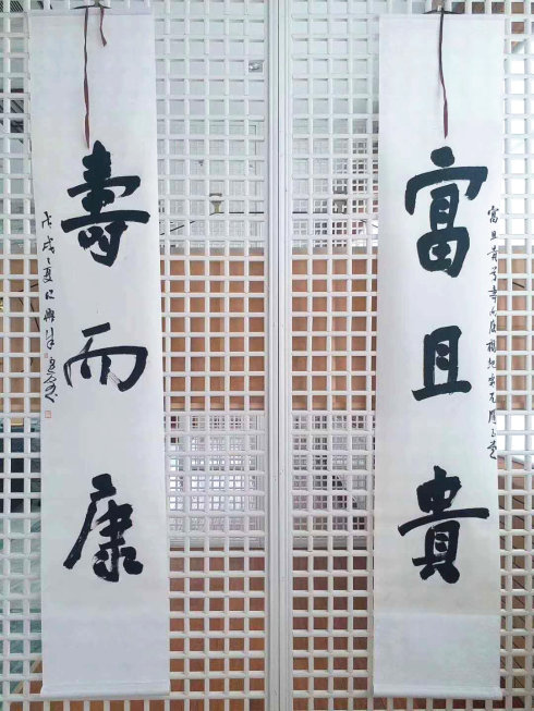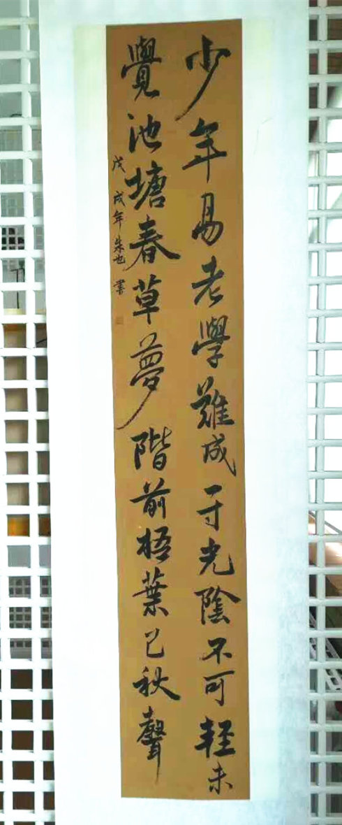 笔者应邀出席并作了简短致辞,并为其撰写了“人生爻若梦,万事舜天行”东夷骨刻文书法以示祝贺!后遂写有题“父左女右”朱勇方、朱也和高三适、高开心父女四人书画展在山东省文化馆成功举办!诗曰: