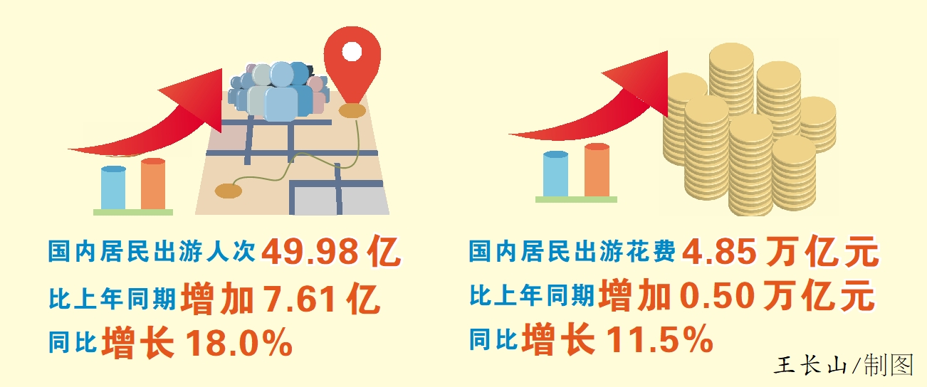 数据显示,2025年前三季度,国内居民出游花费4.85万亿元,比上年同期增加0.50万亿元,同比增长11.5%。其中,城镇居民出游花费4.05万亿元,同比增长9.3%;农村居民出游花费0.80万亿元,同比增长24.0%。