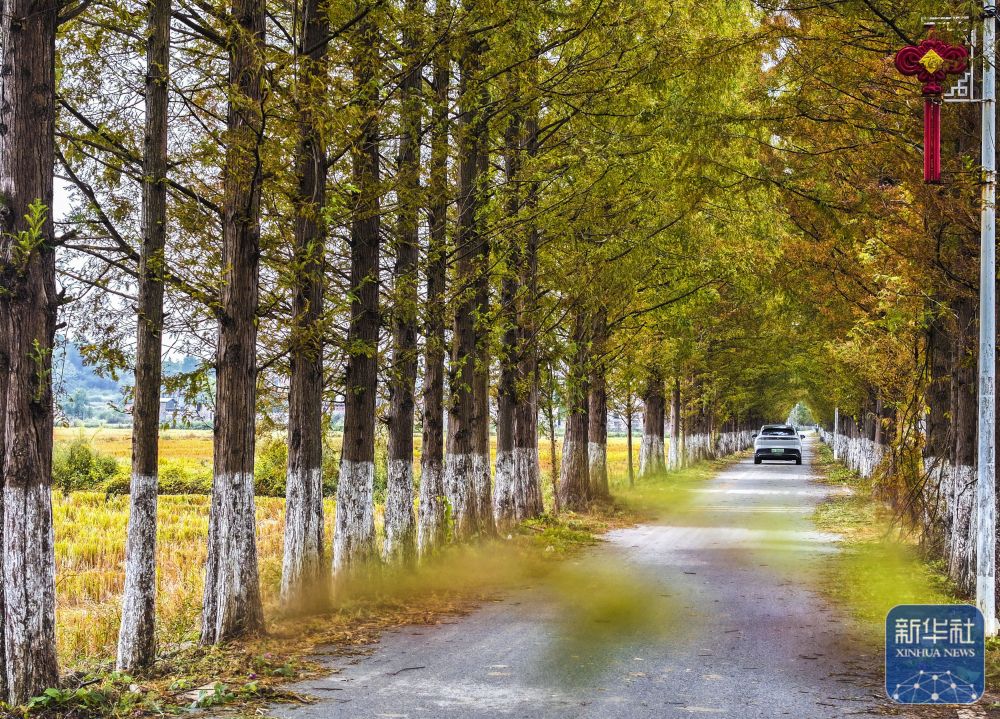 ↑ 10月19日在湖南省常宁市三角塘镇长江村拍摄的乡村秋色(无人机照片)。新华社发(周秀鱼春摄)