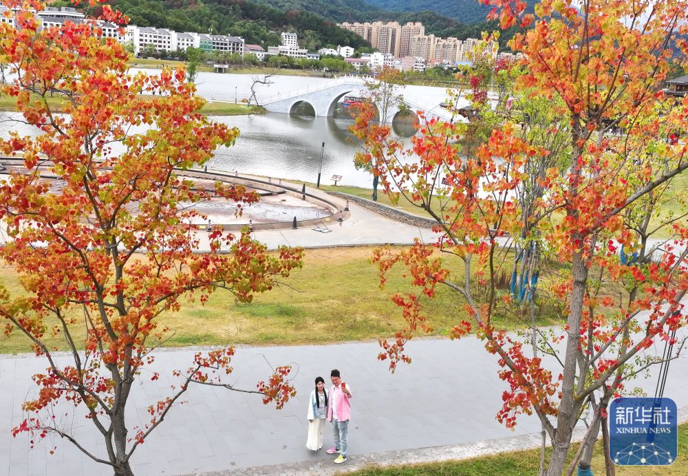 ↑ 10月19日,人们在浙江义乌植物园赏景游玩。新华社发(时宽兵摄)