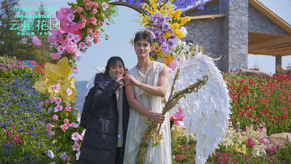 爱神与花精灵漫步花间,白雪公主的长裙拂过小径。美女与野兽在悬崖前相拥,小羊肖恩躲在花丛后偷看,快来云崖花园,寻找他们的身影吧!