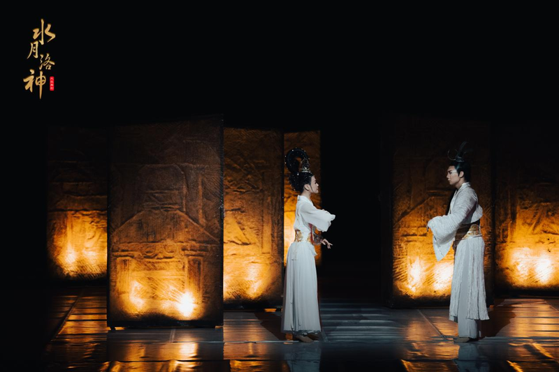 大型舞剧《水月洛神》以曹植的传世名篇《洛神赋》《七步诗》及中原传说为依托将“诗、书、礼、乐、舞”融汇一堂,极富古风古韵之美。“髣髴兮若轻云之蔽月,飘飖兮若流风之回雪。”一千多年前,曹植一首冠绝古今的《洛神赋》为世人勾勒出“翩若惊鸿,婉若游龙”的洛神形象。如今,随着舞剧《水月洛神》的演出,古文中的洛神形象真正实现了具象化。