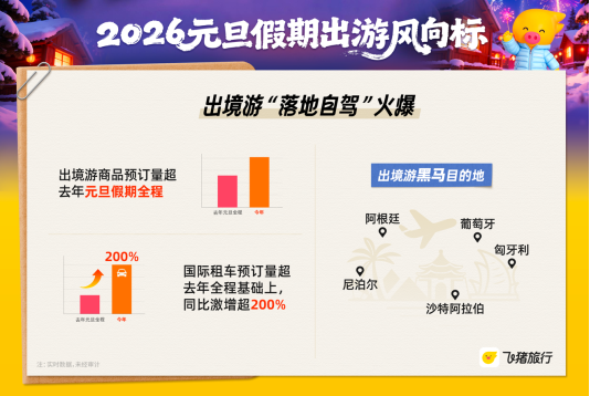 鲁网12月22日讯(记者 焦腾)近日,飞猪发布的《2026元旦假期出游风向标》显示,在“请3休8”拼假攻略的强力带动下,消费者出游意愿高涨,旅游市场呈现出“玩得好、玩得多”的特征。截至目前,元旦假期客单价同比去年增长10%,人均购买件数同比去年增长9%。出境游延续了2025年暑期、“十一”假期的火热势头,商品预订量已大幅超过去年元旦假期全程。