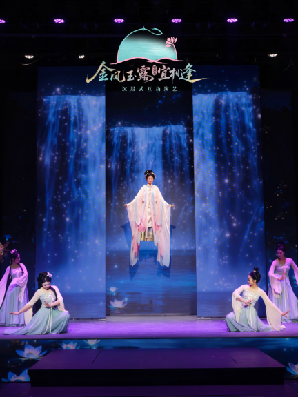 值得关注的是,这场演出最核心的创新,在于让每位参与者都拥有专属于自己的剧情体验。《金风玉露宜相逢》以大明湖传说为基底,围绕“明湖三绝”——佳人绝、雅艺绝、洞玄绝构建核心叙事,鲜活塑造了雨荷、龙公子、汪公子等有血有肉的人物,让藏在岁月里的明湖故事变得可感可触、有温度有情感。这里的互动从不是简单的“凑热闹”,而是深度融入故事本身,观众的每一次投票、每一个选择、每一次回应,都会推动演出呈现独有的过程体验,让每场演出都成为不可复制的存在。