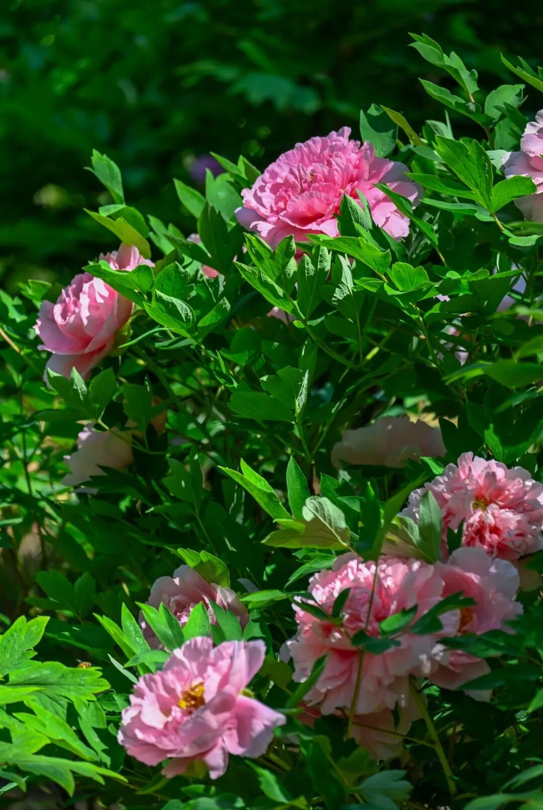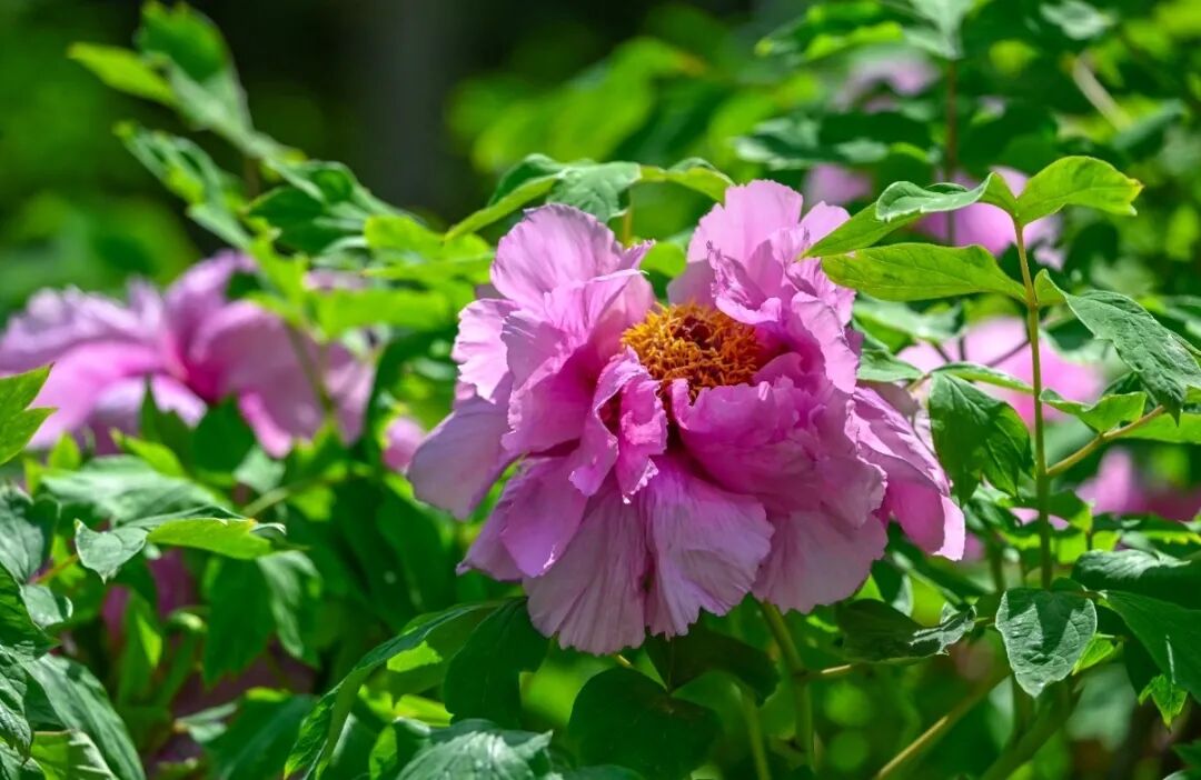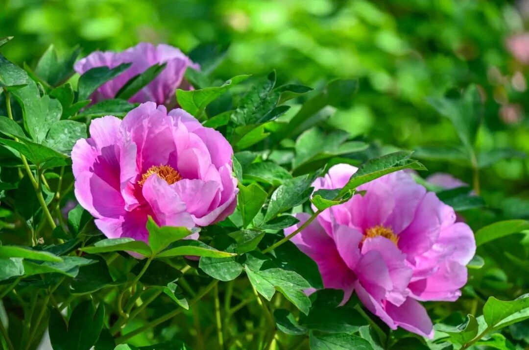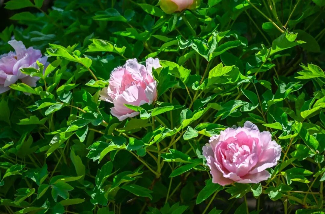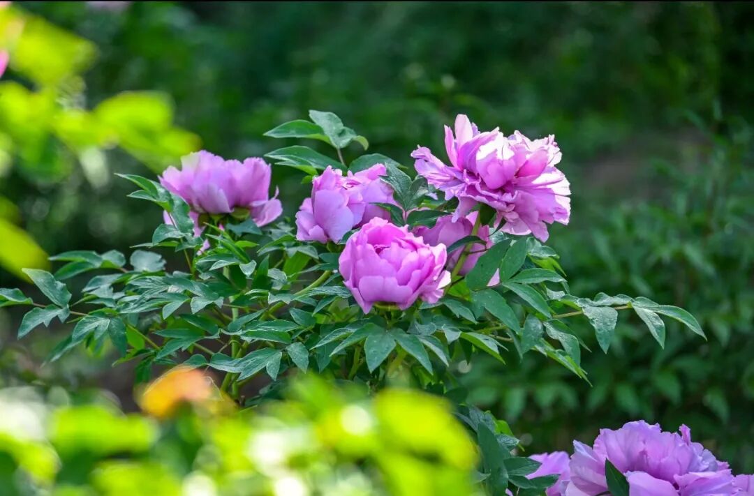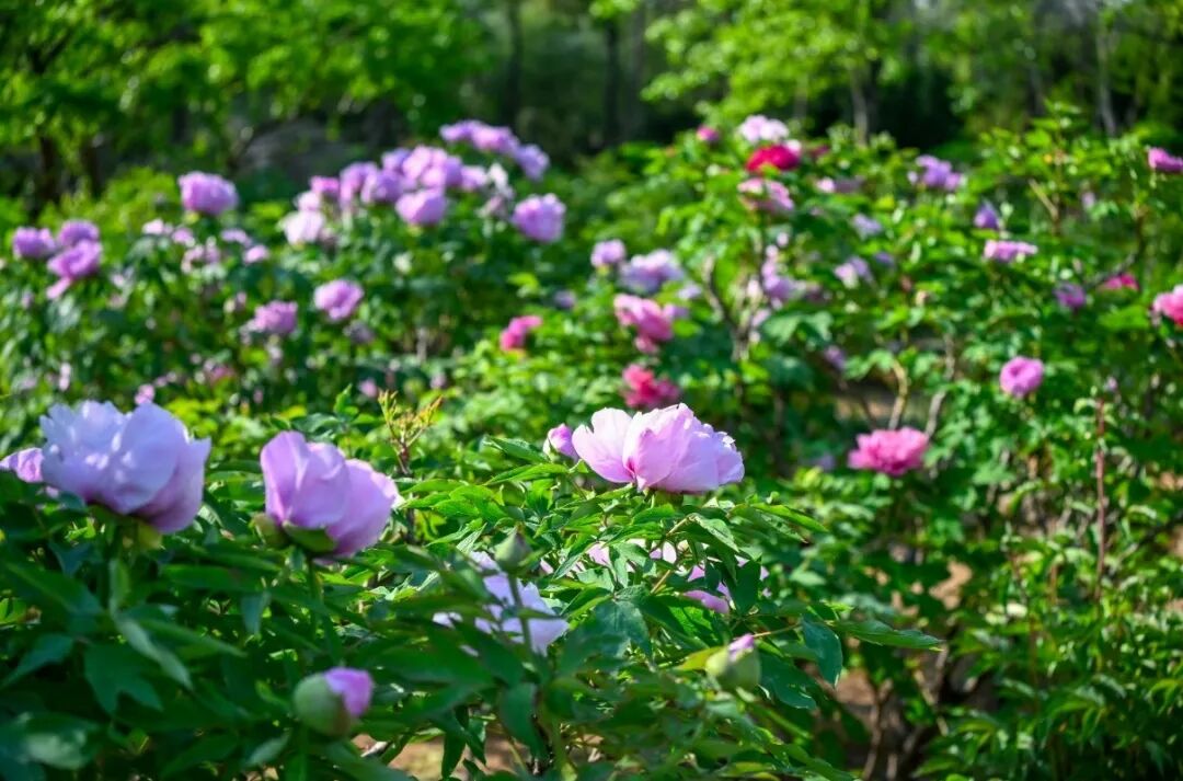 盛开的牡丹,粉白者如凝脂匀透;粉紫者似云霞晕染;金黄的花蕊藏在层层花瓣间,清润又华贵。