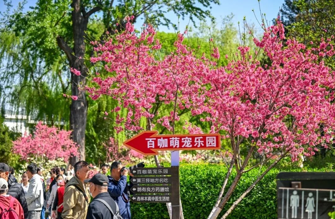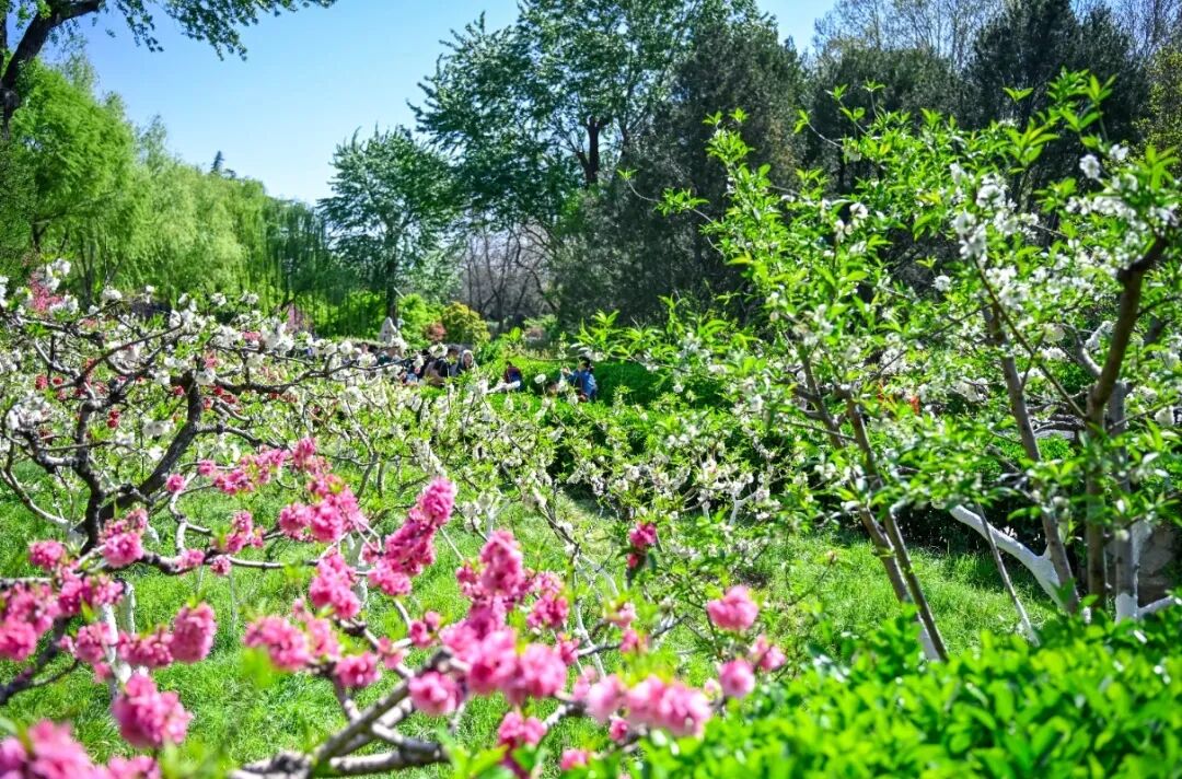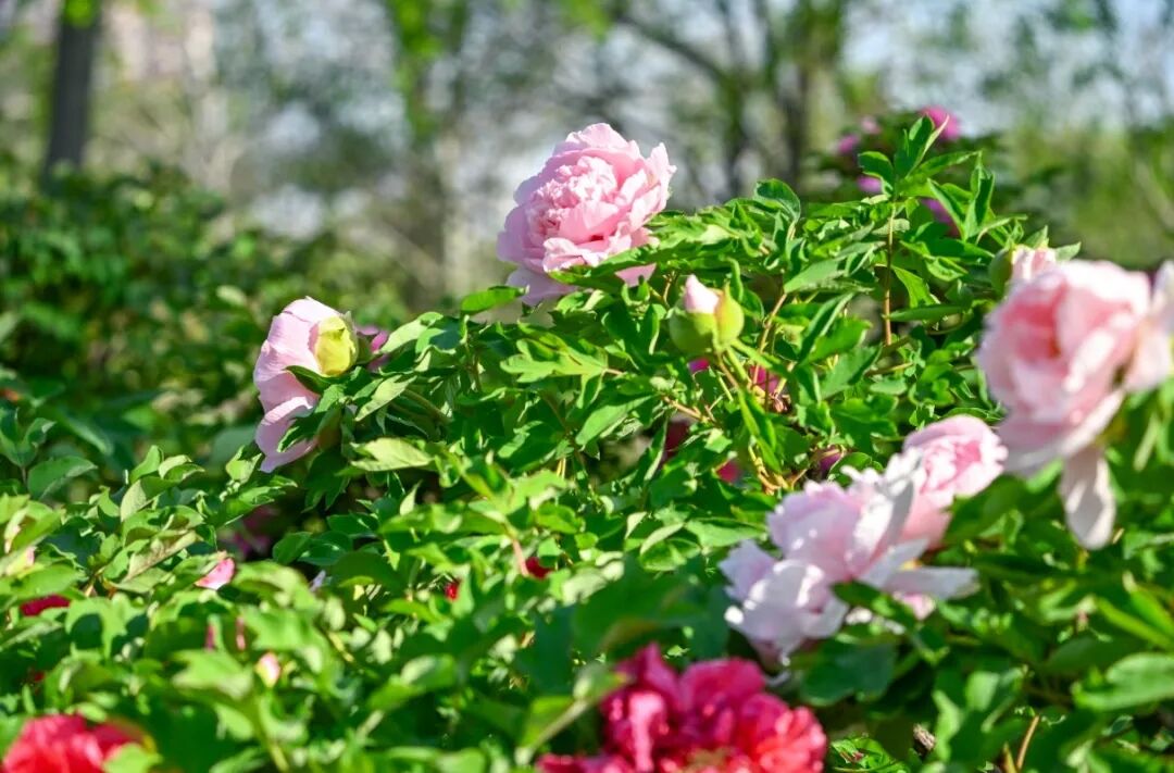 园内碧桃等多种花卉也正值盛花期,粉霞满枝的花朵与牡丹接力绽放。红的热烈、粉的娇柔、紫的浓郁,连成一片绚烂的花潮。满目皆是蓬勃的春日生机,是市区不可多得的免费赏花胜地。