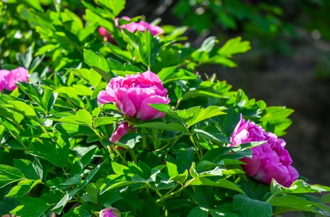 这里的牡丹少了几分规整,多了几分自然野趣。顺着地势自然铺展,与园中景色相映成趣。